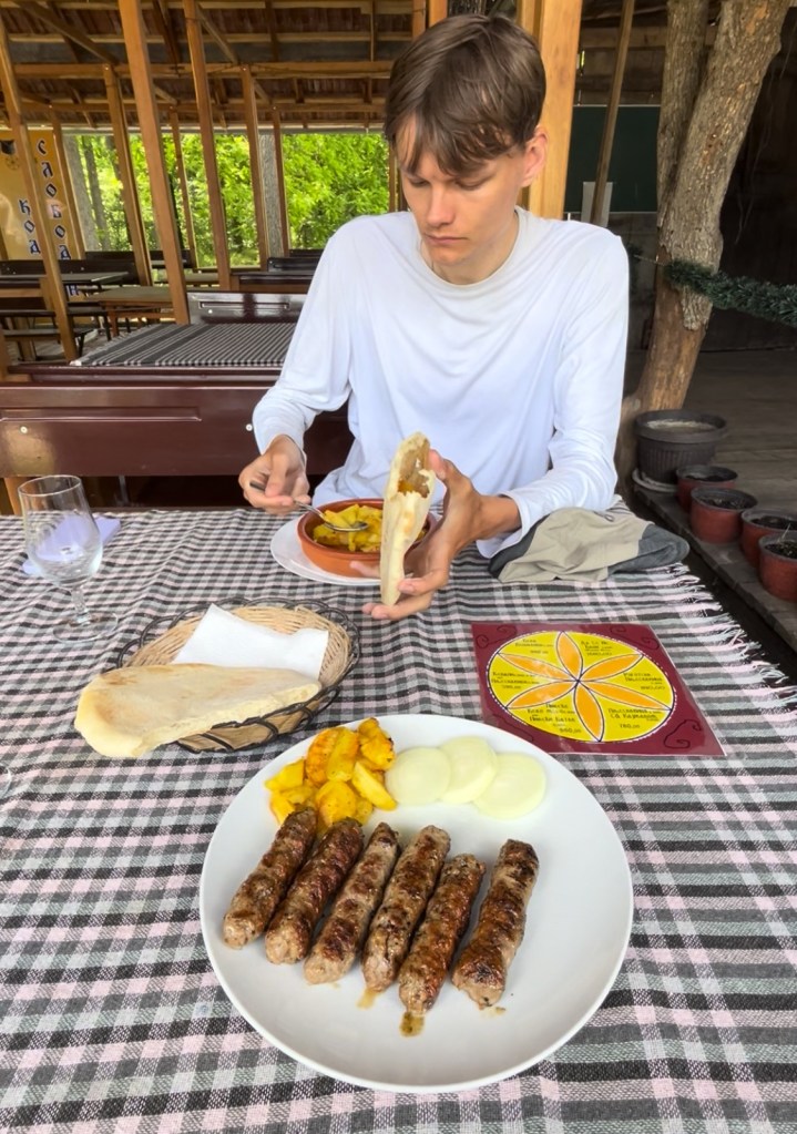 As we reached a crossroads we noticed a classic Serbian diner and decided to stop. It was cowboy vibes, a big porch and meat on the menu. The waiter was kind and cheersed us with a mint cordial. That stuff is good, I wish it would leap over The Channel into our subpar British cafe/ bar culture (note, not pub culture).
